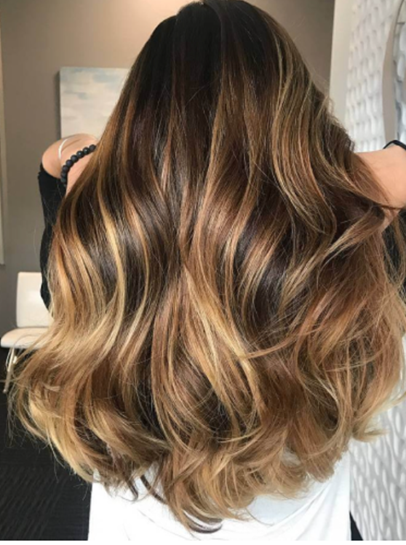 - • Твайлайтнинг — плавный градиент от тёмных корней к светлым кончикам с эффектом «сумерек»;