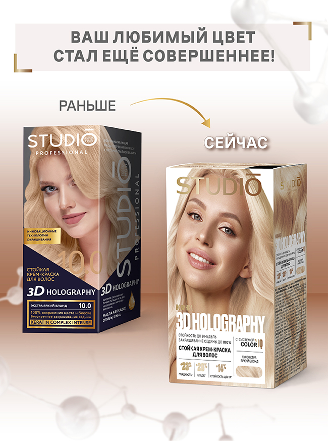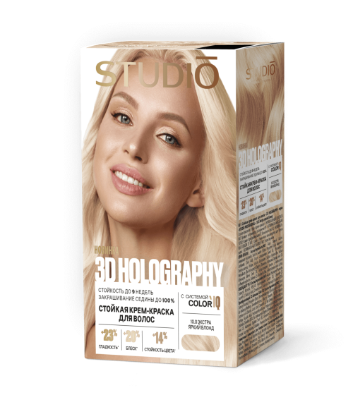 Объединив передовые технологии и мощные активные компоненты, 3D HOLOGRAPHY обеспечивает профессиональное окрашивание в домашних условиях.