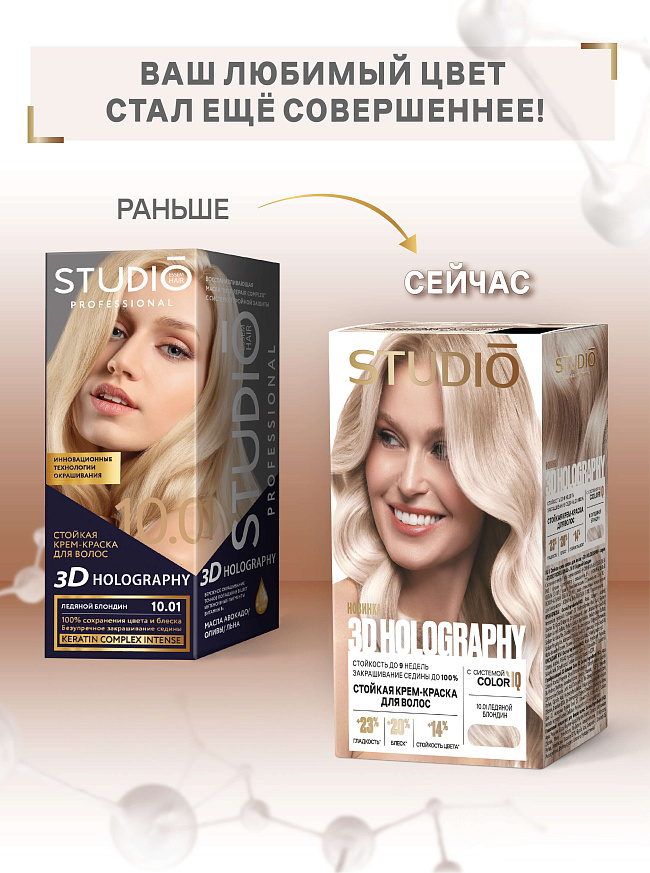 Объединив передовые технологии и мощные активные компоненты, 3D HOLOGRAPHY обеспечивает профессиональное окрашивание в домашних условиях.