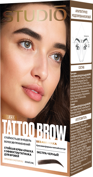 Стойкая крем-краска для бровей с эффектом татуажа Экстра-черный