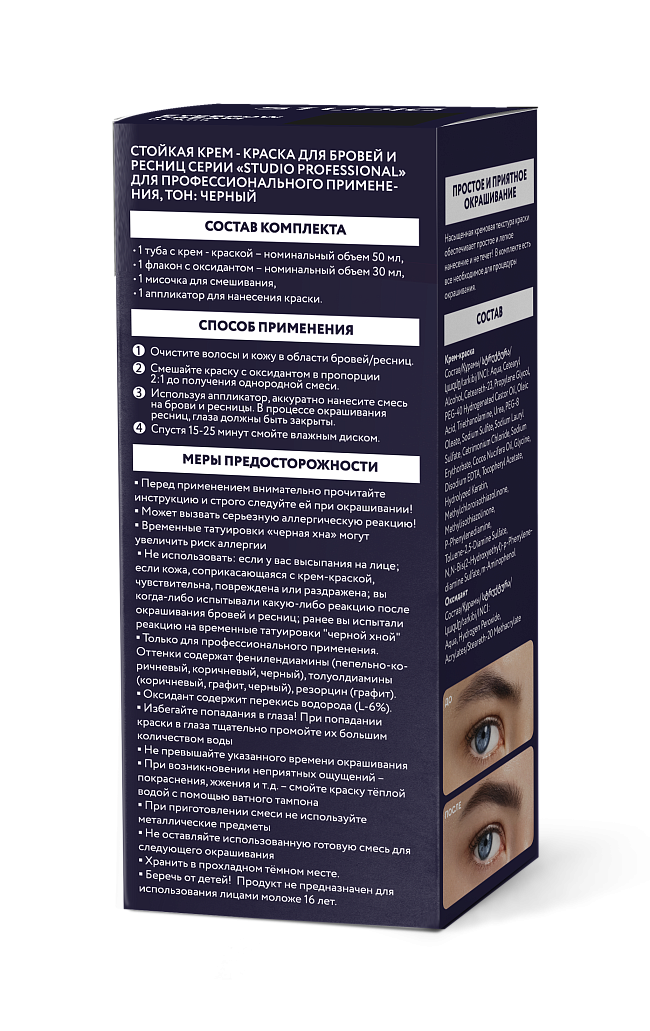 Внимание! Перед окрашиванием проведите тест на аллергическую реакцию! Только для окрашивания бровей!
