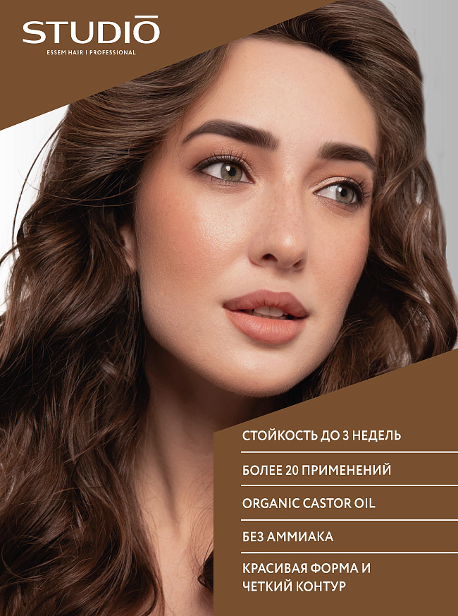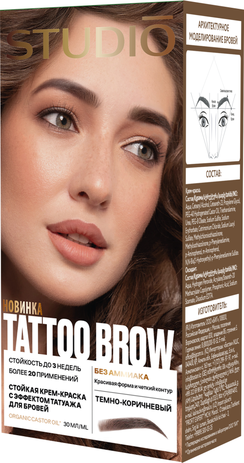 Уникальное свойство крем-краски позволяет окрашивать верхние слои кожи зоны роста бровей, обеспечивая несмываемый эффект татуажа.