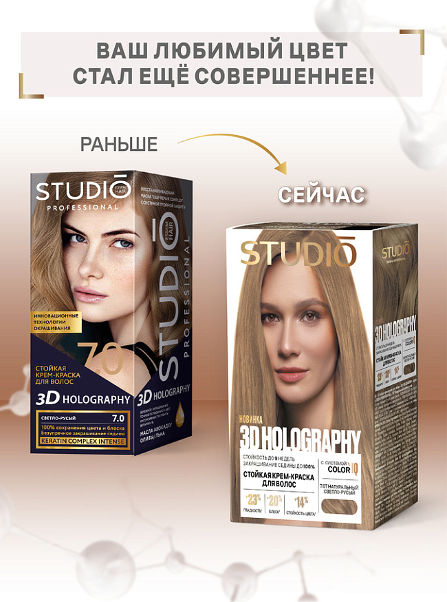 Объединив передовые технологии и мощные активные компоненты, 3D HOLOGRAPHY обеспечивает профессиональное окрашивание в домашних условиях.