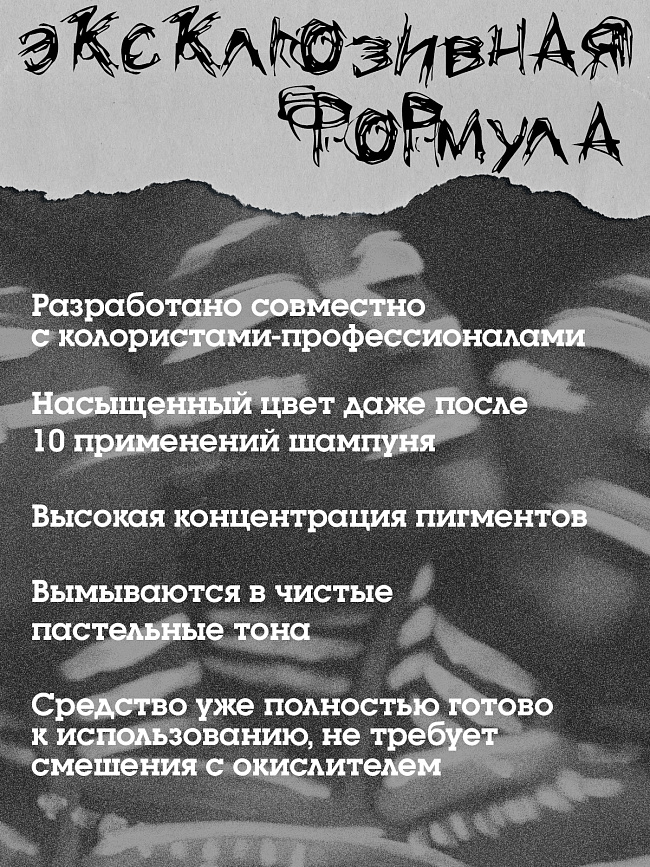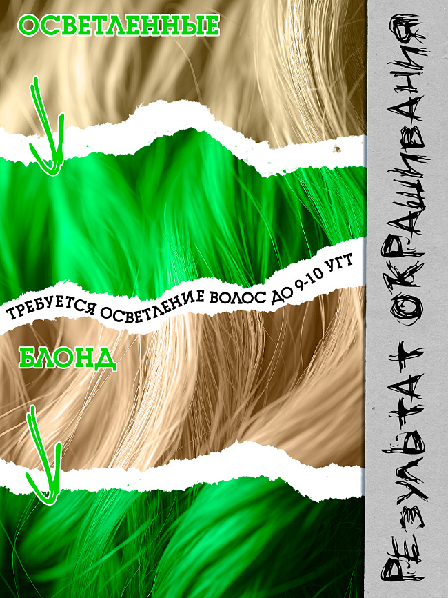 BAD GIRL Absinthe – для тех, кто обожает эксперименты. Этот невероятный оттенок, как и ты, требует к себе особенного внимания и обладает сногсшибательным эффектом. Причем, в буквальном смысле: устоять или пройти мимо абсолютно невозможно! Не требует смешивания. Средство полностью готово к нанесению. Никаких повреждений. Не содержит аммиак и перекись водорода. Прямой пигмент. Для получения максимальной ярких оттенков. Максимальный результат от применения ты получишь на светлых, очень светлых или предварительно осветленных до 9-10 УГТ волосах.