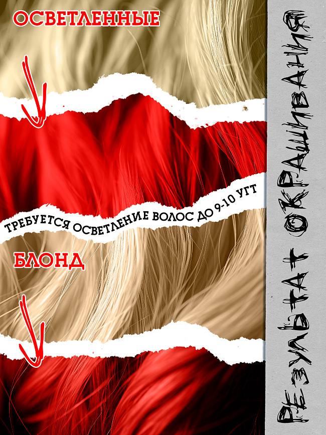 Для волос 7 УГТ и ниже (от русого до брюнета) требуется предварительное осветление. Максимальный результат от применения оттеночного средства Bad Girl ты получишь на светлых, очень светлых или предварительно осветленных до 9-10 УГТ волосах.